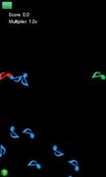 As notas de música azul são pontos de pontuação, as notas de música verde aumentam o multiplicador com 0,1 e as notas de música vermelha diminuirão o multiplicador com 0,2.